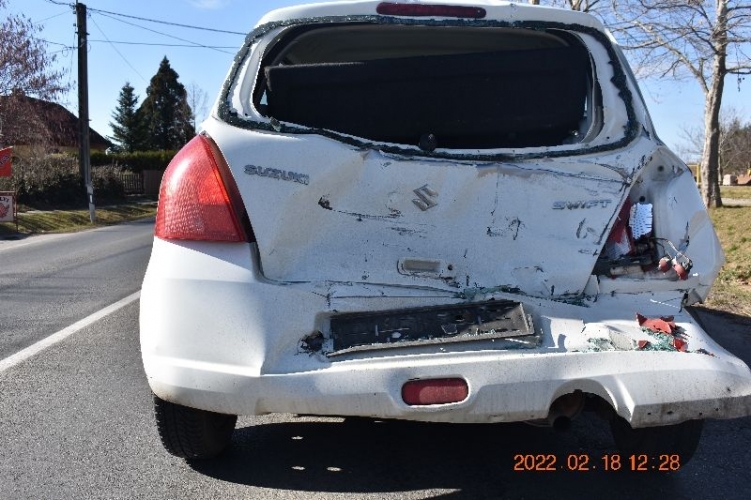 Egy Suzuki vezetője közlekedett a 61-es főúton Kapospula belterületén Attala felé pénteken dél körül. A sofőr forgalmi okból lassított, mert balra akart kanyarodni. Mögötte haladt egy pótkocsis járműszerelvény, melynek vezetője nem tartott megfelelő követési távolságot, és az előtte lassító autó hátuljának ütközött. A balesetben senki nem sérült meg.