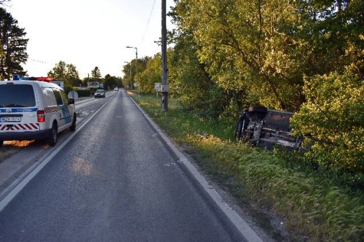 Felborult autójával a 30 éves győri sofőr.