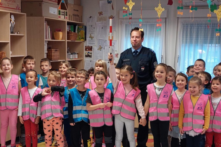 A rendőrök meséltek a kicsiknek munkájukról, bemutatták felszereléseiket, valamint játékos kvíz formájában hasznos tanácsokat adtak nekik a biztonságos közlekedésről. Mindenki kapott a láthatóságot elősegítő ajándékokat, amiket az apróságok rajzok tömkelegével köszöntek meg az egyenruhásoknak.