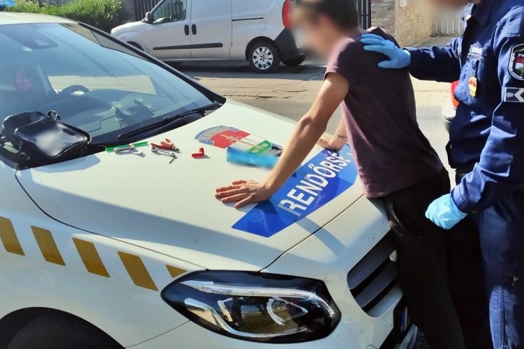 A járőrök Győrben, a József Attila utcában intézkedtek egy - a Templom utca felől, a Fehérvári út irányába közlekedő - személygépkocsi vezetőjével szemben 2020. május 14-én 16 órakor. Az ellenőrzés során a rendőrök átvizsgálták a járművet és a sofőr ruházatát is, amelynek eredményeként a férfi táskájában, valamint alsóneműjében elrejtve egy kábítószergyanús anyagot tartalmazó fecskendőt és egy fiolát találtak. Az egyenruhások az autóban mozgásérzékelő és füstjelző berendezésekre is bukkantak, amelyek eredetét a jármű vezetője nem tudta hitelt érdemlően igazolni.