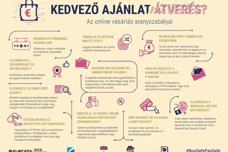 A rendőrség kéri az interneten vásárlókat, hogy legyenek nagyon óvatosak! A kedvezőnek tűnő ajánlatokat fontolják meg, és lehetőleg az áru átvételekor fizessenek, ne utalják el előre a vételárat! Nézzék meg az eladóról írt véleményeket, értékeléseket, és ne csak e-mailen kommunikáljanak vele, hanem hívják fel telefonon is! Mielőtt vásárolnak, a közösségi oldalakon megnézhetik, nem tettek-e már bejegyzéseket károsultak arról a hirdetőről, akivel felvették a kapcsolatot!
