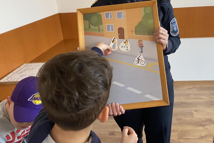 Az intézmény 2. és 3. osztályos diákjai az iskolarendőrük kíséretében elsőként az előállító helyiséget tekintették meg, ahol mindenki kipróbálhatta bilincset. Ezt követően a gyermekek beülhettek a rendőrautóba, amelynek alkalmával a biztonsági övet is be kellett csatolniuk. A rendőr felhívta a figyelmüket arra, hogy még rövid úton sem szabad elmulasztani az öv használatát, valamint a vezető melletti első ülésen 150 centiméternél alacsonyabb gyermek nem utazhat. Végül három mágnestábla segítségével a gyalogos és kerékpáros közlekedés szabályaival, a kerékpárok kötelező tartozékaival és a kerékpárosok számára is fontos közlekedési táblákkal ismerkedtek a kisdiákok.