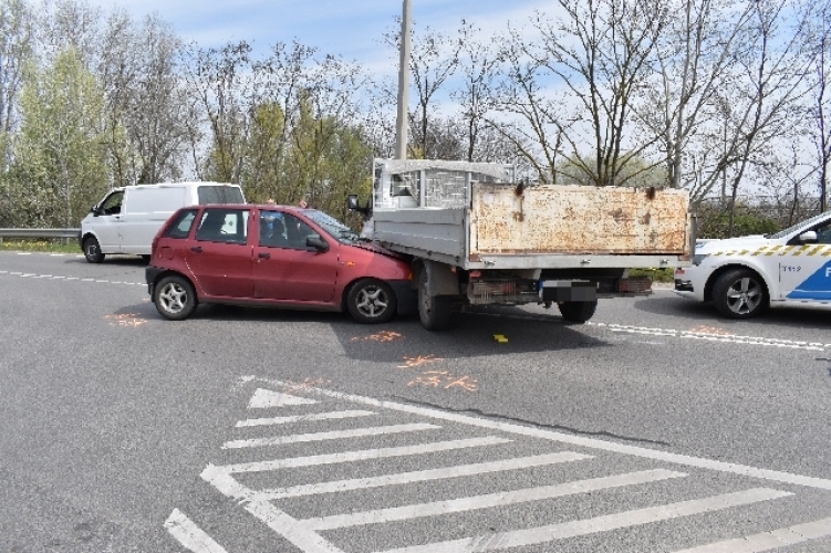 A Pollack utcában egy autós nem tartott megfelelő követési távolságot, így az előtte forgalmi okból lassító teherautó hátuljának ütközött.