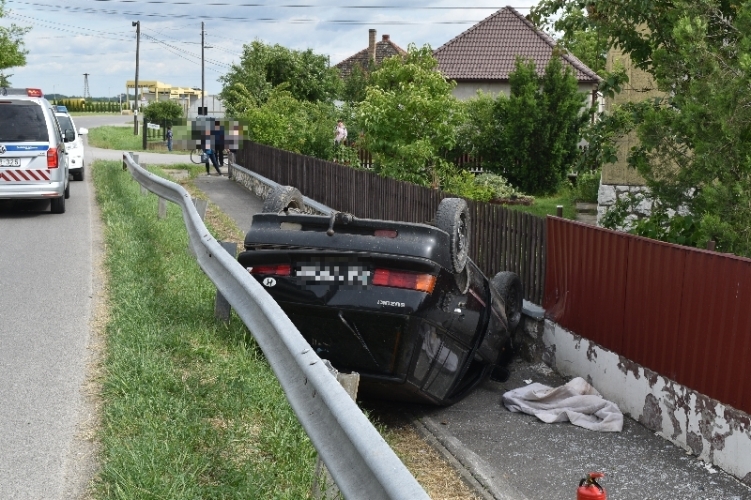 Pénteken délután fél négy körül Őcsényben közlekedett egy autós a Bethlen utca felől Decs irányába. Haladása során a kocsi sebességét nem az út vonalvezetésének megfelelően választotta meg. Egy balra ívelő kanyarban lehajtott a füves padkára, majd felhajtott a szalagkorlátra, ami az autót megdobta, ezért az út melletti ingatlan kerítésének ütközve tetején állt meg. A férfi súlyosan megsérült a balesetben, ráadásul a szonda is magas értéket jelzett és esetében az autó használatának jogszerűsége is megkérdőjelezhető. Több szabálysértési eljárás is indult az ügyben.