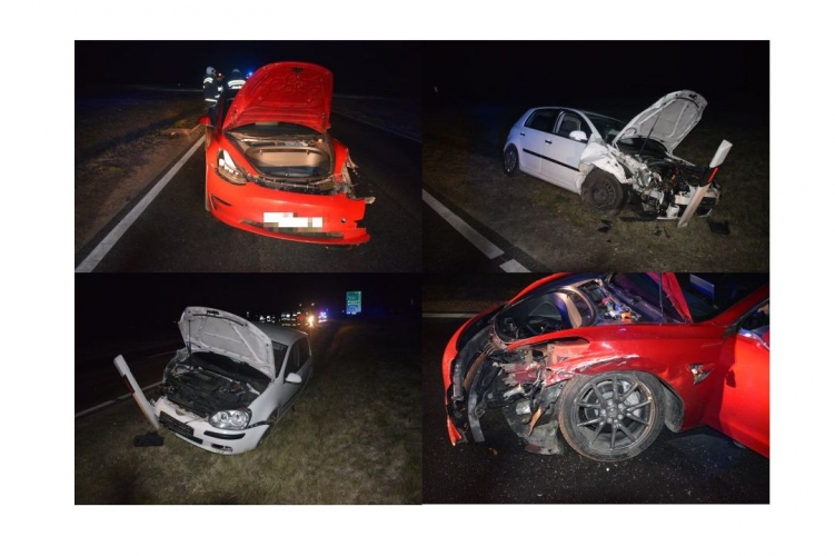 A 82-es számú főúton, Győr irányából Nyúl felé közlekedett egy Tesla típusú személyautó vezetője 2020. január 7-én 22 óra 15 perckor. Közlekedése során elhagyta az M1-es autópálya felhajtóját, ahova szeretett volna továbbmenni, lassított, majd jobbra hátrafordult, eközben azonban a kormányt balra fordította, így nekiütközött a vele azonos irányba haladó és az ő előzését már megkezdő Volkswagen típusú gépkocsinak. A Volkswagen sofőrje intenzíven fékezett, az autóját balra kormányozta, azonban az ütközést elkerülni nem tudta, így annak következtében a bal oldali vízelvezető árokba hajtott. A balesetben a vétlen autó két utasa megsérült, őket a mentők kórházba vitték. A rendőrök a Tesla vezetőjét közúti baleset gondatlan okozásának vétsége miatt gyanúsítottként hallgatták ki.
