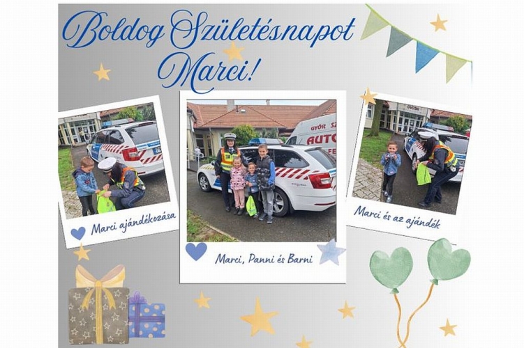 A születésnapi kívánságnak nagy örömmel tett eleget Majorné Bajnok Eszter rendőr őrnagy, aki május 5-e reggelén a család házánál várta Marcit, így a kis ovis rendőrautóval érkezett társaihoz a Dunaszegi Óvodába. A kis csapatot elkísérte a kisfiú két testvére, Panni és Barni is. A kisgyermekek útjuk végállomásán mosolyogva, jókedvűen szálltak ki az autóból.