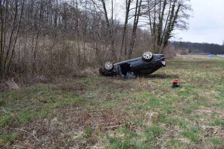 Megcsúszott és felborult autójával