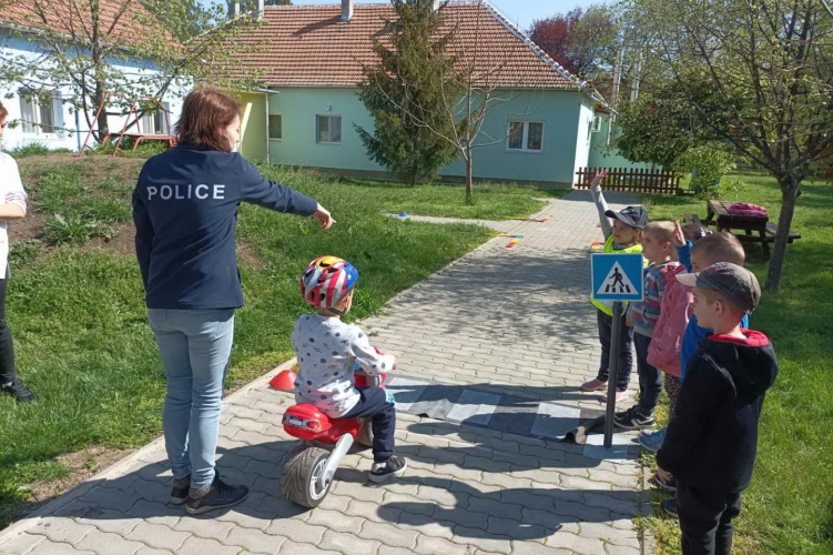 Az elmúlt héten a Szolnoki Rendőrkapitányság munkatársai a Rákócziújfalui Mesevár Óvodában játékos feladatokkal oktatták az ovisoknak a legfontosabb közlekedési szabályokat, amiket a rögtönzött mini KRESZ pályán gyakorolhattak az apróságok. A gyerekek megtekinthették a rendőrautót és be is ülhettek. A nap végén a rendőrök láthatósági eszközökkel ajándékozták meg a mesevár „lakóit”.