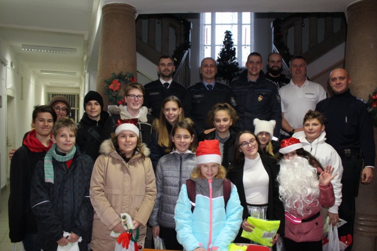 A Jászberényi Rendőrkapitányság szolgálatot teljesítő rendőreit lepte meg egy csapat iskolás gyermek.