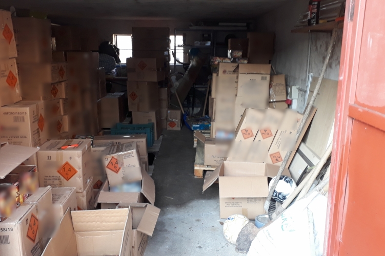A helyszínen megállapították, hogy a jogszabályban megengedett 20 kg nettó hatóanyag helyett közel 610 kilogramm hatóanyag-tartalmú pirotechnikai eszközt tartanak, valamint a tárolás feltételei sem megfelelőek.