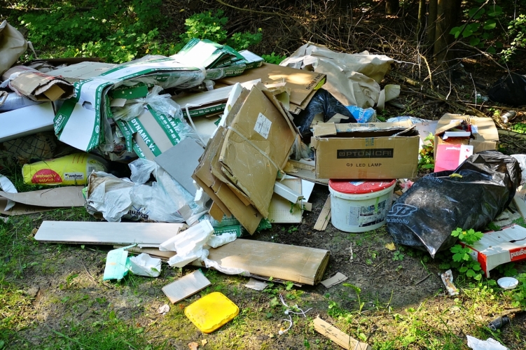 Nagyobb mennyiségű szemét az erdő szélén
