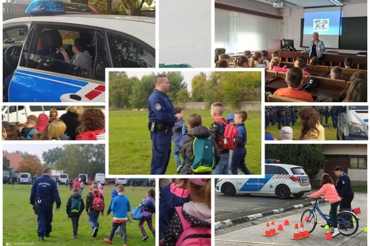 A rendőrkapitányság udvarán – a délelőtti órákban a közlekedésrendészeti munkatársak a gyermekekkel átismételték a gyalogos- és kerékpáros közlekedési szabályokat, kiemelt figyelmet fordítva az őszi időjárás következtében megváltozott út- és látási viszonyokra.