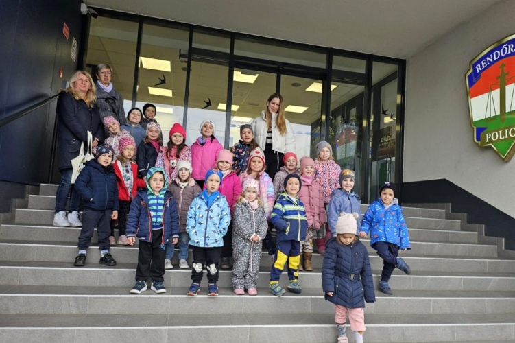 Másnap viszont a Soproni Rendőrkapitányságot 22 csillogó szemű apróság lepte meg, akik a Sopronkőhidai Tagóvoda Madár csoportjából érkeztek. Először a szolgálatirányító parancsnok feladataival illetve a különleges rendőri felszerelésekkel ismerkedhettek meg, majd nagy izgalommal kukkantottak be az előállító helyiségbe. A Közlekedésrendészeti Osztály munkájával Szabó Noémi rendőr zászlós bemutató előadásán keresztül találkoztak. A látogatás végén pedig óriási örömmel szállták meg a rendőrségi járműveket.
