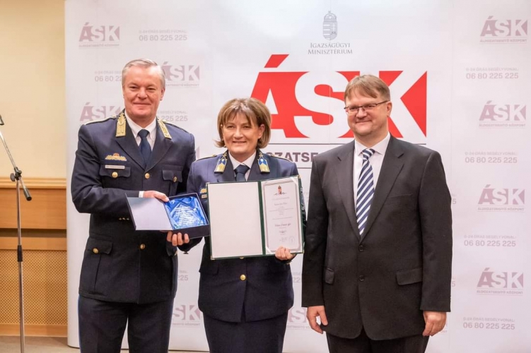A szakterületen 30 éves tapasztalattal rendelkező alosztályvezető a világnap alkalmából dr. Répássy Róbert, az Igazságügyi Minisztérium parlamenti államtitkárától és dr. Töreki Sándor r. vezérőrnagy, bűnügyi országos rendőrfőkapitány-helyettestől vehette át a rangos elismerést és az adományozást igazoló oklevelet.