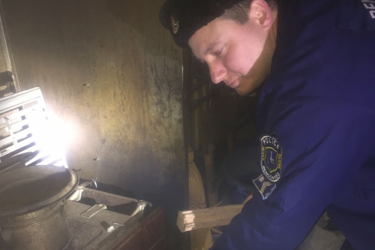 A település körzeti megbízottja, Csorba Attila rendőr törzsőrmester hasogatott fát az egyedül élő férfinak, majd a kályhájában tüzet gyújtott.