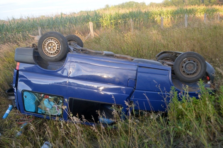 A két sofőr egyaránt elvesztette uralmát a járműve felett, és az úttestről letérve, az árokba hajtott. A kisbusz ezt követően felborult, és fejtetőn állt meg.