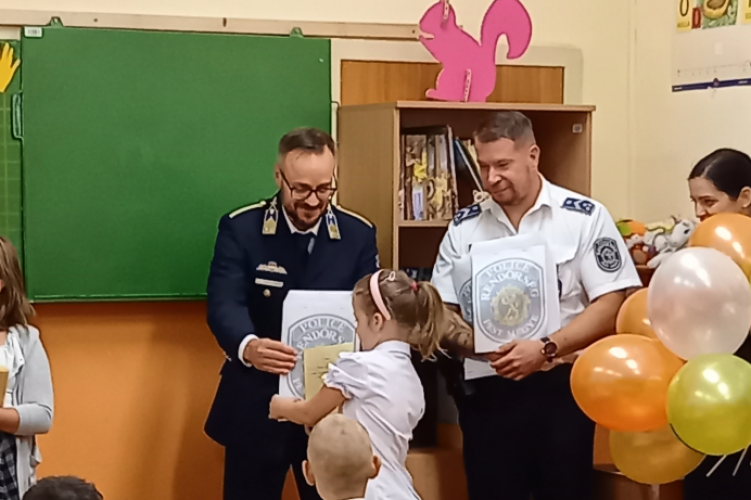 A meglepetéseket dr. Csipler Norbert alezredes, a Monori Rendőrkapitányság vezetője adta át az iskola rendőre, a bűnmegelőzési előadó, az iskolaőr koordinátor és maga az iskolaőr társaságában. Az eső ugyan elmosta az udvarra tervezett ünnepélyes rendezvényt, ez azonban nem volt akadálya annak, hogy a rendőrök nagy örömet okozzanak a kezdetben félénk, megszeppent kisiskolásoknak.