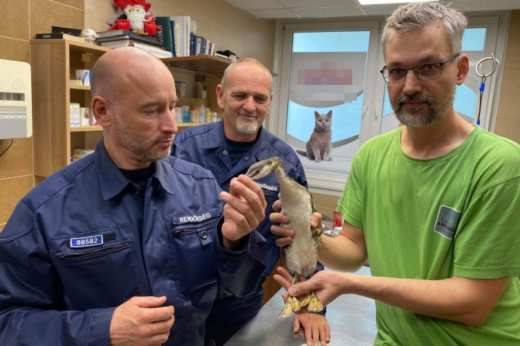 Csizmazia Tamás c. r. törzszászlós és Rába Gábor c. r. zászlós, a Főkapitányság Bűnügyi Technikai Osztályának kutyavezetői egy, a közelben történt betörés helyszínén végzett eredményes nyomkövetésükről tértek vissza szolgálati helyükre, amikor, a nagy forgalmú 8-as számú főúton, Jánosháza térségében található körforgalomnál felfigyeltek egy magatehetetlen madárra az úttesten. A madarat beazonosították és egy szombathelyi állatambulanciára szállították, ahol az állatorvos által végzett vizsgálat során kiderült, hogy a kifejlett búbos vöcsök szerencsésen megúszta a kalandot és az ijedtségen kívül más baja nem esett. Kollégáink az állatorvos segítségével a szombathelyi Csónakázó tóhoz vitték, majd rövid búcsú után visszaengedték a természetbe.