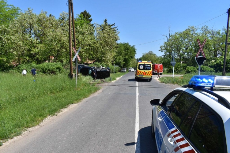 Egy személyautó a vasúti átjáróban a sínekre hajtott és ott összeütközött egy vonattal.