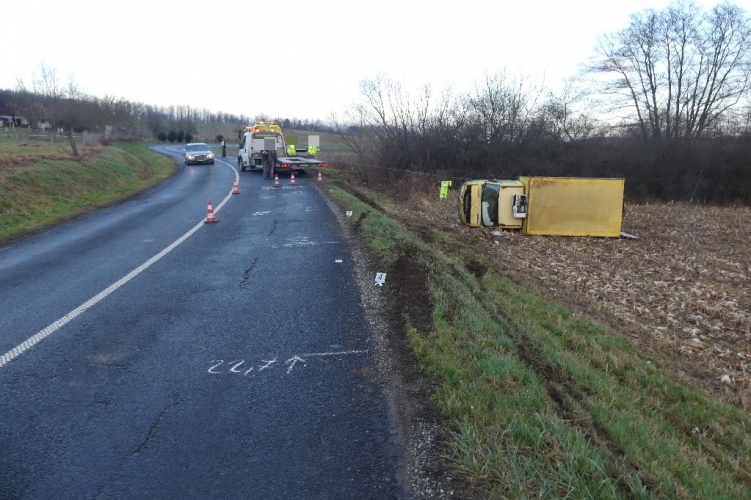 Egy 34 éves budapesti férfi közlekedett 2019. december 27-én 13 óra 50 perckor Zalalövő és Zalacséb között a 7411-es számú út 6-os kilométer 740-es méterszelvényénél egy Iveco típusú autóval Zalalövő irányából Zalacséb felé. Közlekedése során egy balra ívelő útkanyarulatban megcsúszott, és egy mezőgazdasági területre csapódott, majd oldalára borult. A balesetben nem sérült meg senki, a járműben anyagi kár keletkezett.