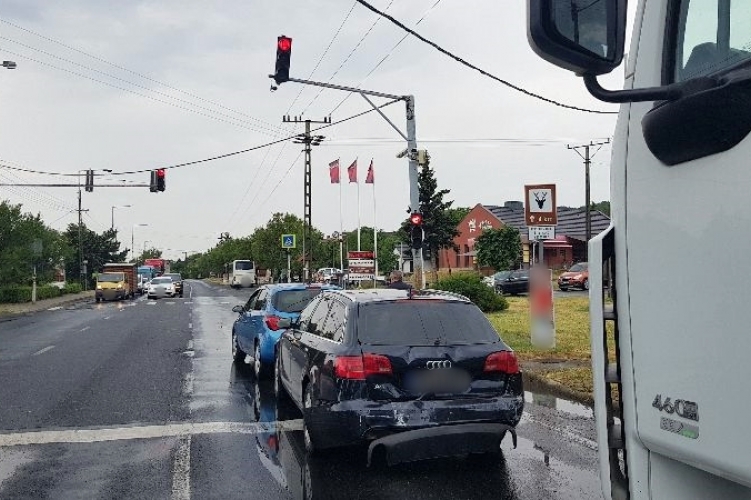 Piros lámpánál várakozó autóknak ütközött egy kamion Vonyarcvashegyen.