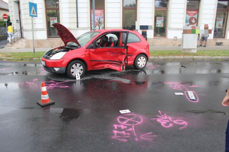 Keszthelyen, a Csók István utcában a Kossuth Lajos utca felé közlekedett egy nő Ford típusú személyautóval 13 óra 45 perckor, amikor a két utca kereszteződésénél figyelmen kívül hagyta az „Elsőbbségadás kötelező” jelzőtábla utasításait, behajtott a kereszteződésbe és összeütközött egy Toyota típusú személyautóval. A balesetben a Ford sofőrje könnyű sérülést szenvedett.