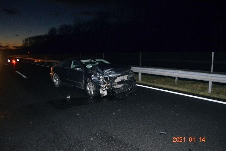 Egy 42 éves román állampolgárgárságú férfi közlekedett 2021. január 14-én 17 óra 10 perckor autójával az M7-es autópályán Nagykanizsa irányából Zalakomár felé. Haladása során a 195-ös kilométerszelvénynél nekiütközött az előtte forgalmi ok miatt lassító személyautónak, ami a jobb oldali szalagkorlátnak csapódott. A balesetben személyi sérülés nem történt.