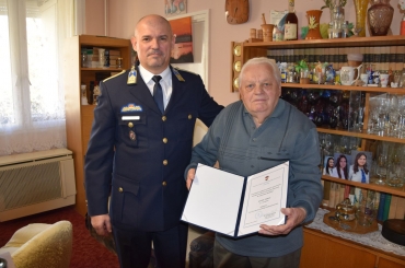 Tőzsér András nyugállományú r. törzszászlóst otthonában látogatta meg Nógrád vármegye rendészeti rendőrfőkapitány-helyettese.