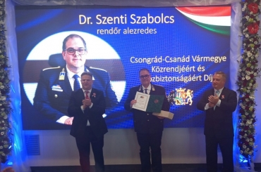 Az elismerést dr. Szenti Szabolcs r. alezredesnek, a Szegedi Rendőrkapitányság vezetőjének adományozták.