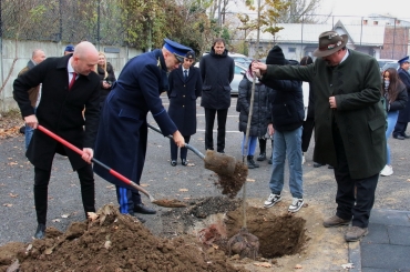 Közös faültetés a Veszprém Vármegyei Rendőr-főkapitányság udvarán.
