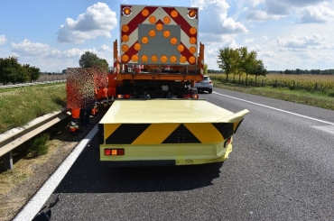 Útkarbantartási munkálatokat jelző gépkocsinak ütközött egy autós az M1-es autópálya Győr-Moson-Sopron megyei szakaszán.