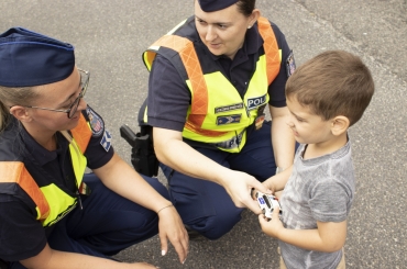 A kis Marcellt harmadik születésnapján köszöntötték fel a Győri Rendőrkapitányság Közrendvédelmi Osztályának beosztottai 2021. július 12-én.