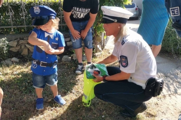 A rendőrautók kis rajongója őszinte örömmel fogadta kollégáink köszöntését és ajándékait.