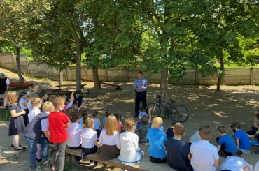 A piliscsabai körzeti megbízottat fogta közre több mint száz iskolás.