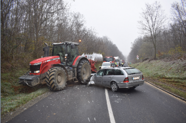 A rendelkezésre álló adatok szerint egy zalaegerszegi sofőr nem a megváltozott útviszonyoknak megfelelően vezette gépkocsiját, amelynek következtében egy traktorral ütközött.