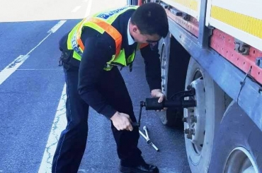 Az egyenruhások az M35-ös autópályán segítettek biztonságosan kereket cserélni egy sofőrnek.