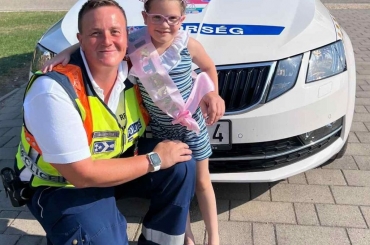 Születésnapi partiján köszöntötte fel a 7 éves Dzsenifert a Csornai Rendőrkapitányság munkatársa.