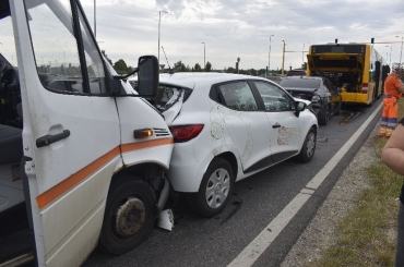 Az 1-es számú főútvonalon történt közlekedési balesetben négy gépjármű ütközött, és egy személy megsérült.