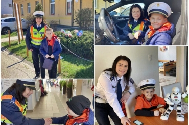 Milánt a 7. születésnapja alkalmából a Győri Rendőrkapitányság Közlekedésrendészeti Osztályának munkatársa várta az iskolában, és a kisfiú rendőrautóval utazhatott otthonába.