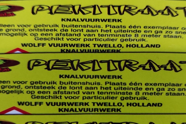 A termék nem felel meg a Pirotechnikai Irányelvben foglaltaknak és az Európai Szabványnak (EN15947). |