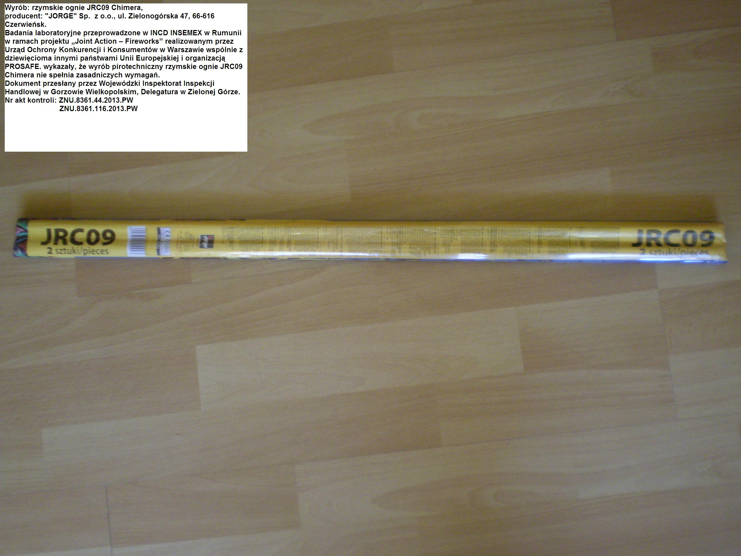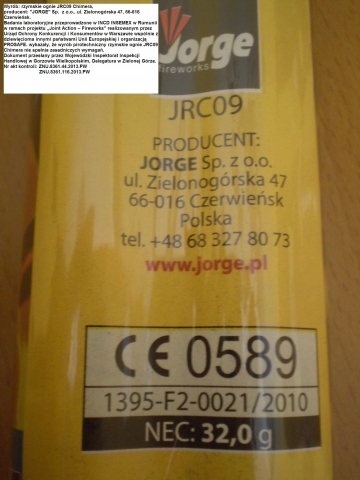A termék nem felel meg a Pirotechnikai Irányelvben foglaltaknak és az Európai Szabványnak (EN15947).