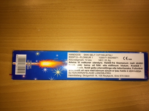 A termék nem felel meg a Pirotechnikai Irányelvben foglaltaknak és az Európai Szabványnak (EN15947)