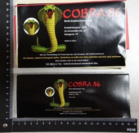 A termék nem fele meg a Pirotechnikai Irányelvben foglaltaknak és az Európai Szabványnak (EN15947)
