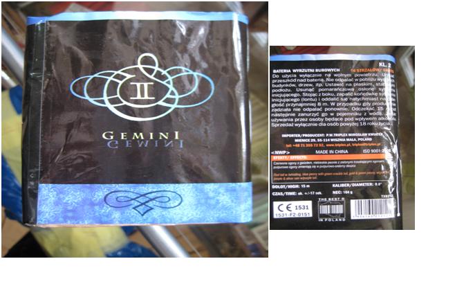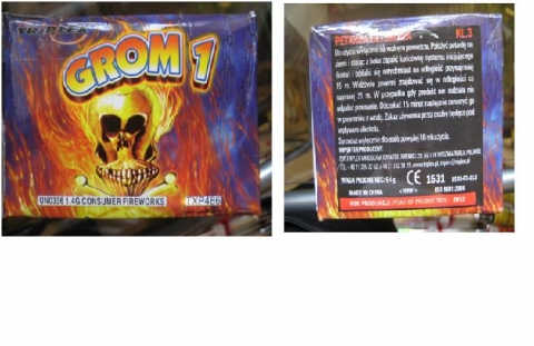 A termék nem felel meg a Pirotechnikai Irányelvben foglaltaknak és az Európai Szabványnak (EN15947)