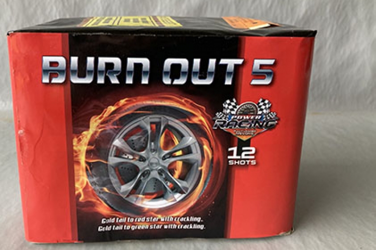 Név: Burn out 5 Kategória: F2 Leírás: 12 lövésből álló tűzijáték Márka: Fyrværkerieksperten A/S