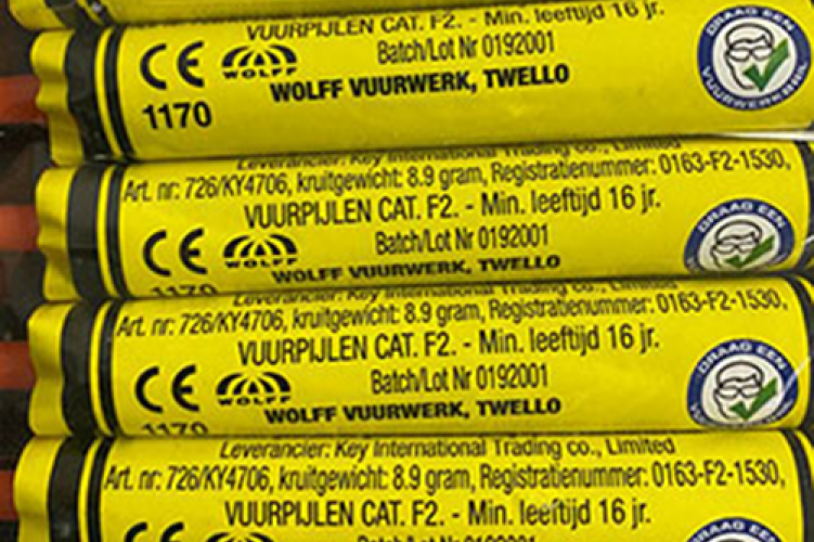 A termékek nem felelnek meg a Pirotechnikai Irányelvben foglaltaknak és az Európai Szabványnak (EN15947).