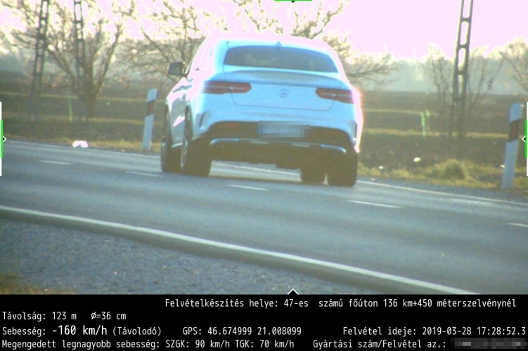 Békéscsaba külterületén, 44-es számú főúton Kondoros irányába haladt egy személygépkocsi 2019. március 27-én, 8 óra 46 perckor. Az autó vezetője a megengedett 90 km/ óra helyett 164 km/h sebességgel közlekedett. Másnap, március 28-án 17 óra 28 perckor, a 47-es számú főúton Csorvás felé haladt egy személygépkocsi, a megengedett 90 km/óra helyett 160 km/ órával.