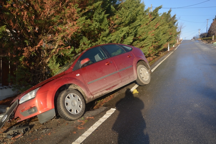 Sukorón, a jeges úttesten irányíthatatlanná vált autó az árokba csapódott, ahol egy beton kapubejárónak ütközött.