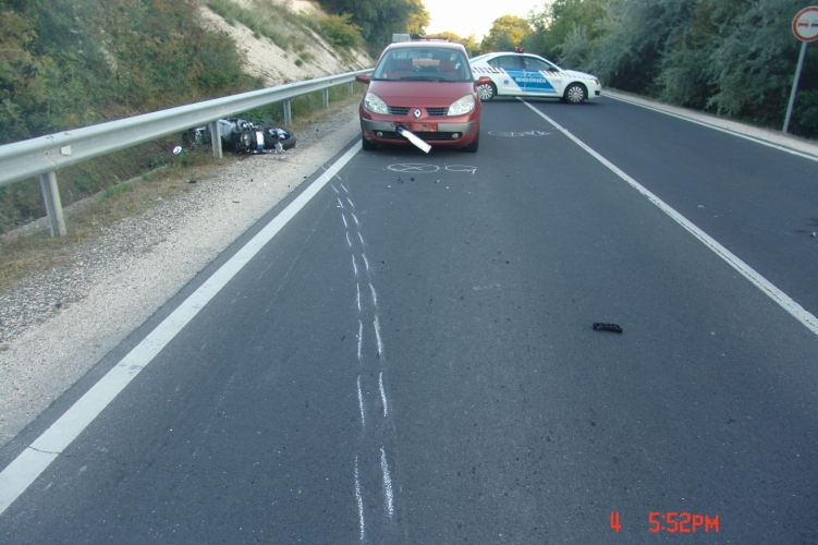 Személyi sérüléssel járó közúti közlekedési baleset történt 2013. október 4-én Tatabánya belterületén az 1. számú főúton. Egy motoros ütközött neki egy személygépkocsinak, a jelenleg rendelkezésre álló adatok szerint utóbbi hibájából. Az autó vezetője egy tehergépkocsi takarásában balra kanyarodott úgy, hogy nem győződött meg a manőver biztonságos végrehajtásáról. Épp akkor érkezett az útkereszteződéshez egy motorkerékpáros, aki nem tudta kikerülni a kanyarodó járművet és nekiütközött. A motoros elesett, őt sérüléssel a mentő kórházba szállította. A személygépkocsi vezetője ellen súlyos személyi sérüléssel járó közúti közlekedési baleset gondatlan okozása vétség elkövetésének megalapozott gyanúja miatt indított eljárást a Tatabányai Rendőrkapitányság Közlekedésrendészeti Osztálya.
