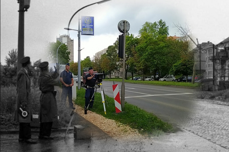 A hetvenes évek elején, Miskolcon, a Szentpéteri kapuban készült fényképfelvétel alapján egykori kollégáink, az időjárási viszontagságok ellenére is rendületlenül álltak az út mellett. A mért sebességet pedig kézzel mutatták távolabb álló kollégáiknak, hetvenet a hetvenes évek elején. A cél mit sem változott, a közlekedés biztonsága közös érdekünk, hogy mindenki hazaérjen.